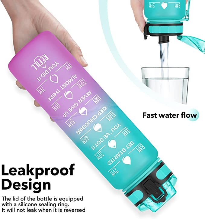 Cita motivadora y marcador de tiempo: Con una cita inspiradora única y un marcador de tiempo en ella, esta botella de agua es ideal para medir tu ingesta diaria de agua, recordándote que debes mantenerte hidratado y bebiendo suficiente agua durante todo el día. Es un artículo imprescindible para cualquier objetivo de entrenamiento, incluyendo pérdida de peso y salud en general.