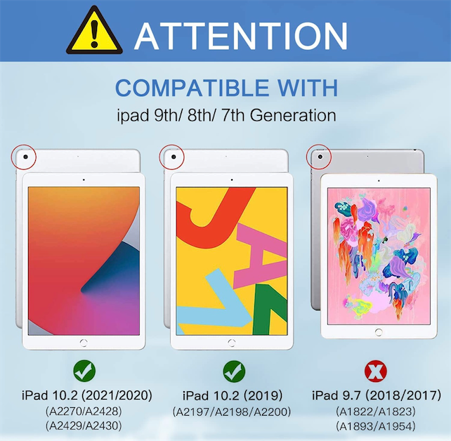 Modelos compatibles: funda Cantis compatible con el nuevo iPad de 9ª generación de 10.2 pulgadas versión 2021 y iPad 8ª/7ª generación 2020 y 2019. Número de modelo: (A2602 A2603 A2604 A2605/ A2270 A2428 A2429 A2430/ A2197 A2198 A2200). No es compatible con otros dispositivos.