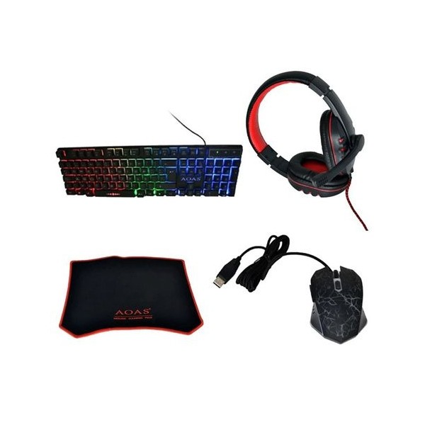 Kit de Gamer Juego Combo Teclado + Mouse + Audifonos + Mouse pad gaming