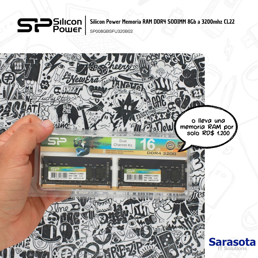 Silicon Power Memoria RAM DDR4 SODIMM 8Gb a 3200mhz CL22, SP008GBSFU320B02