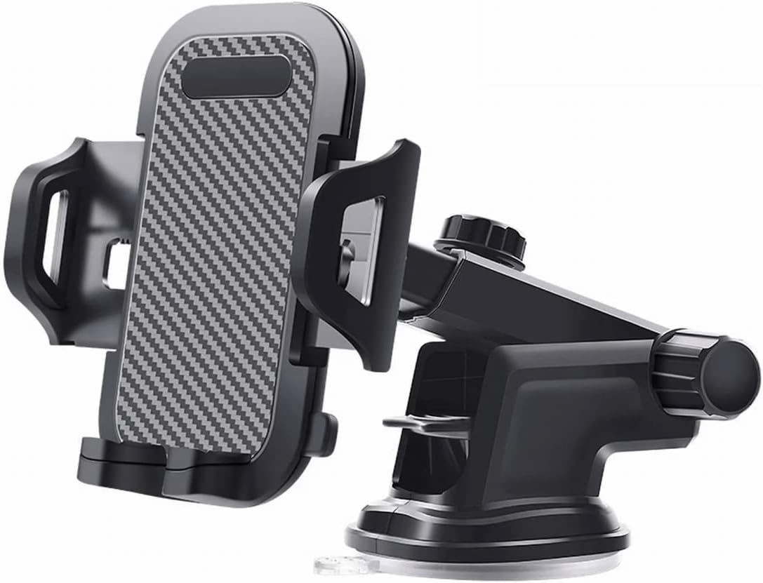 Almohadilla de esponja amortiguadora para llevar el teléfono de forma más estable Cuenta con efecto de barra de rotación de 270 grados; se estira hasta 29 cm de longitud; base de teléfono con rotación de 360 grados ; ventosa de dos engranajes para un montaje constante en una superficie lisa.