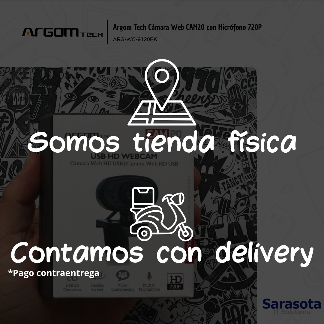 Argom Tech Cámara Web CAM20 con Micrófono 720P, ARG-WC-9120BK
