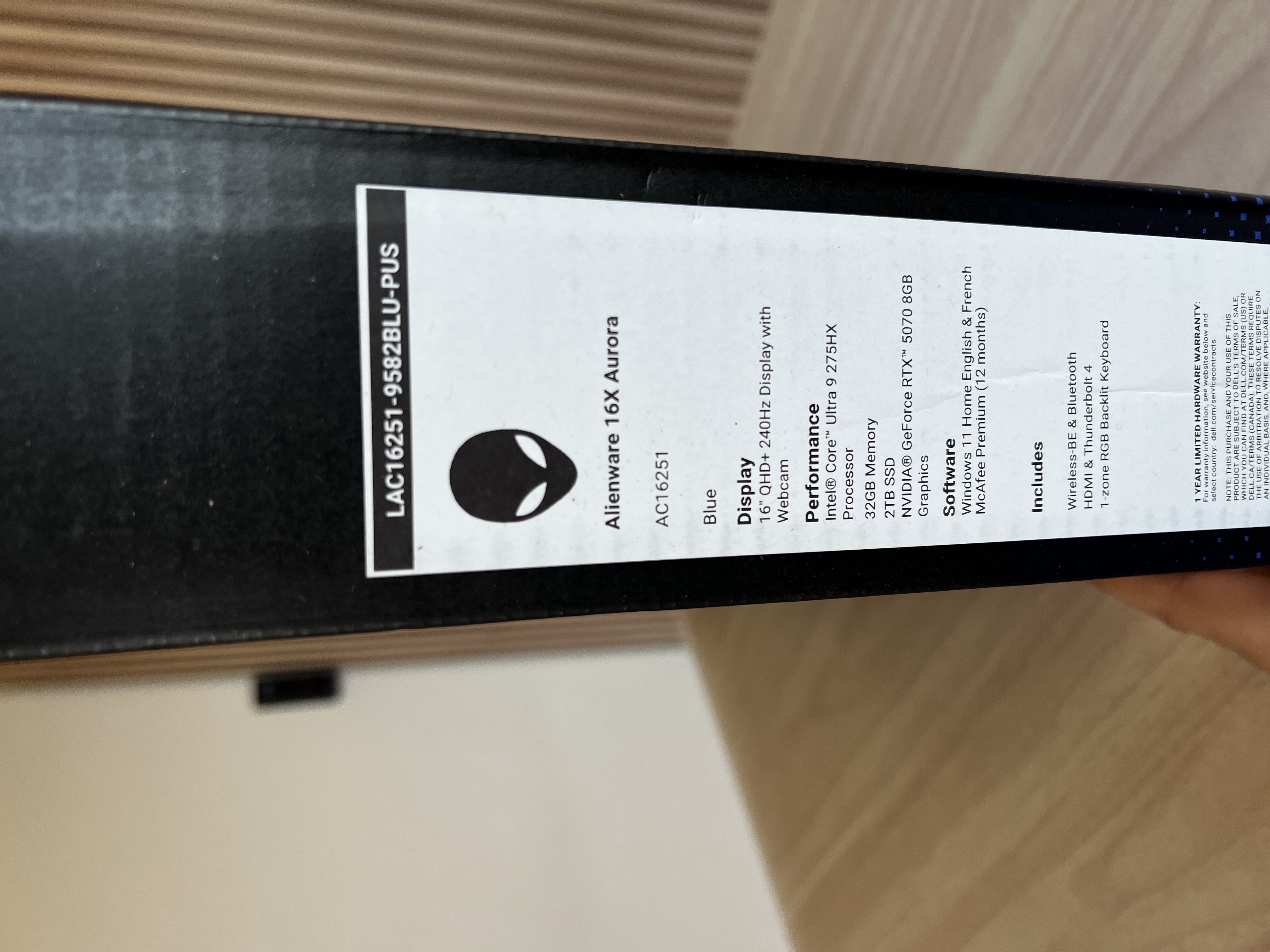 ALIENWARE 16X AURORA 16” 240HZ ULTRA 9 275HX 32GB RAM 2TB SSD RTX 5070 8GB