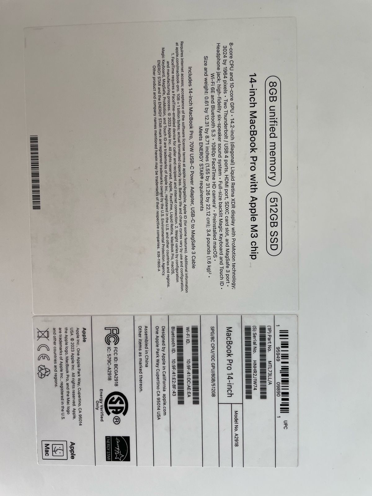 MACBOOK PRO M3 14 PULGADAS 512GB 8GB RAN/ OPEN BOX