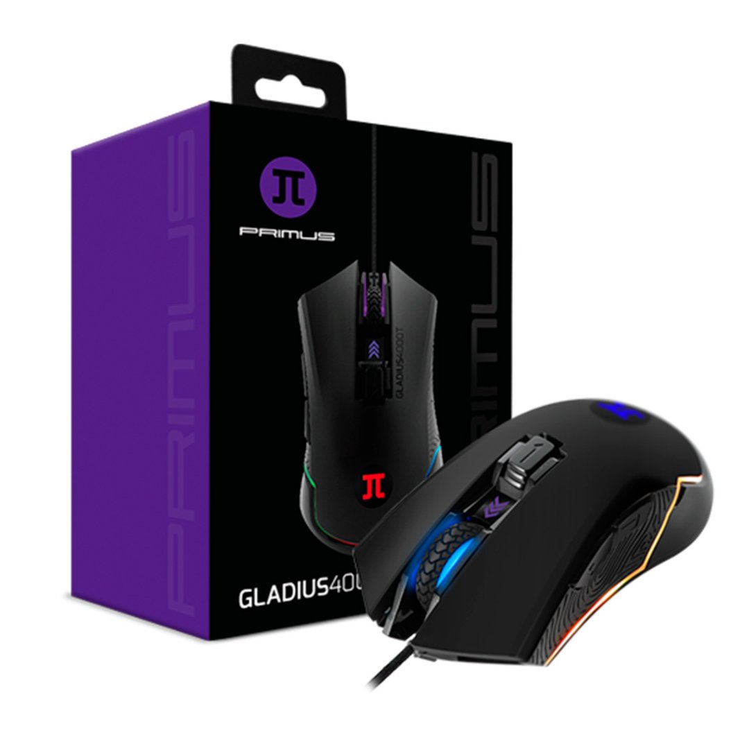 MOUSE PRIMUS PMO-101, GAMING GLADIUS 4000T, OPTICO USB, 6 BOTONES, VELOCIDAD AJUSTABLE ENTRE 500 A 4000 DPI, COLORES RGB AJUSTABLE CON SOFTWARE (PMO-101)
