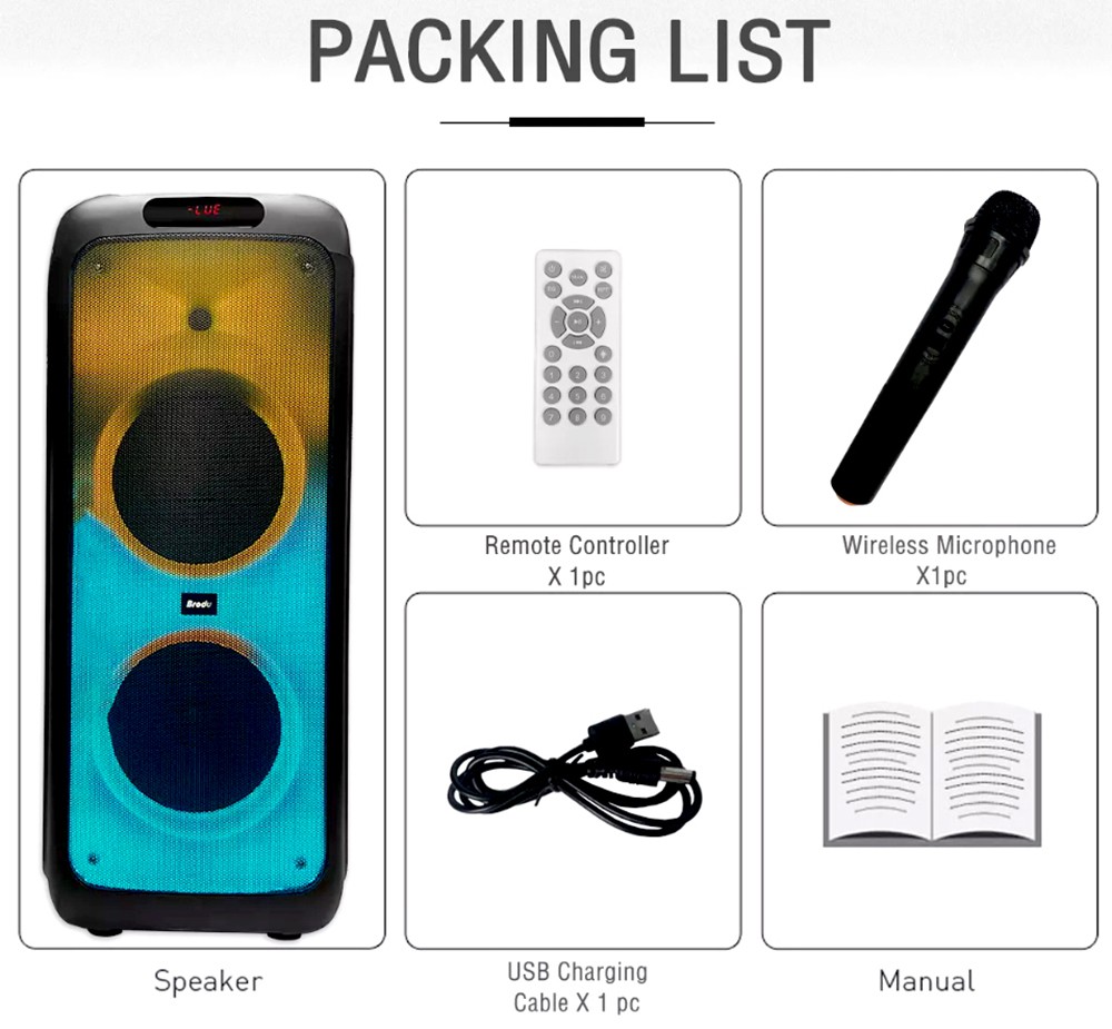 Bocina Portátil 10" Con Bluetooth radio FM lector USB y micro SD Con Luz RGB BTS