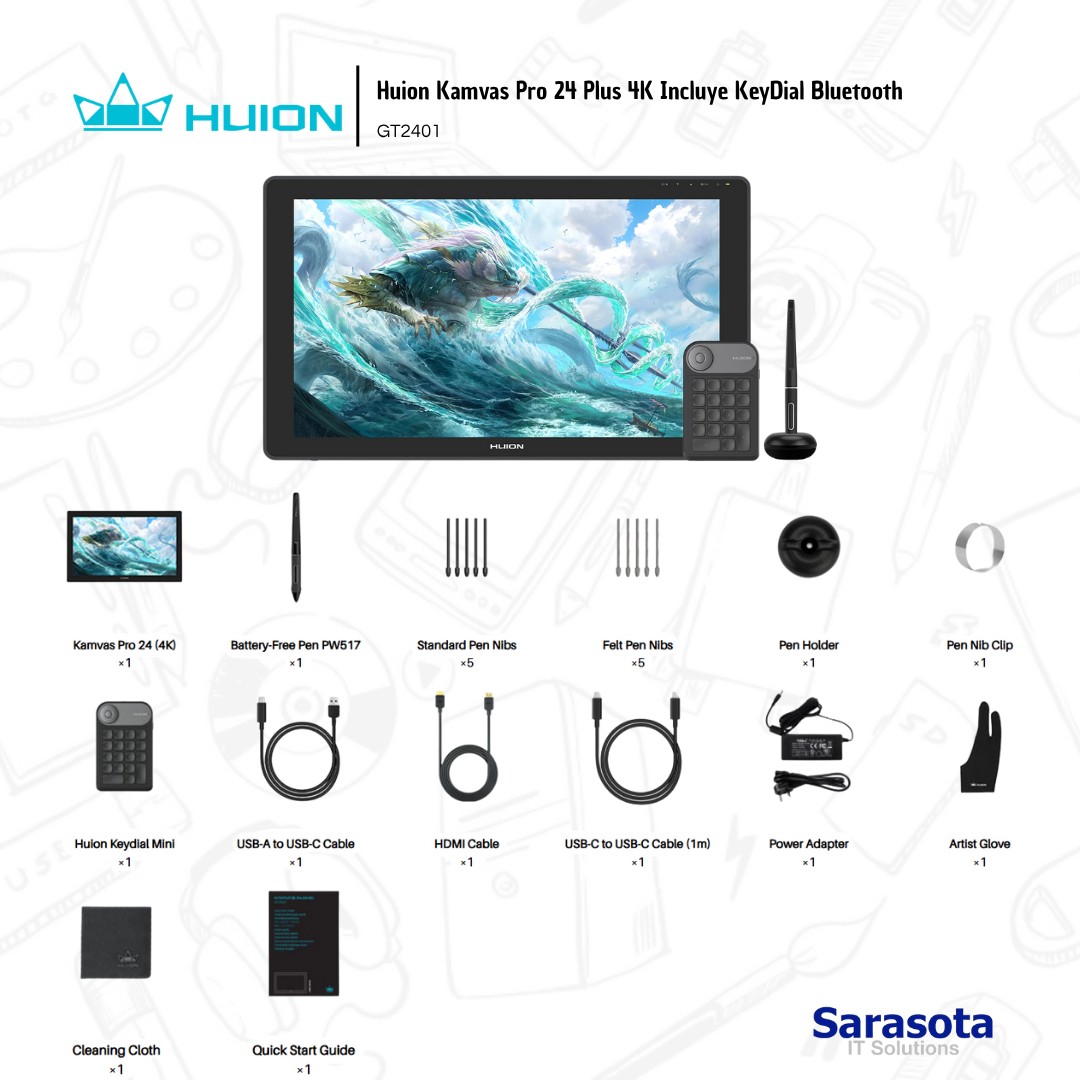 Huion Kamvas 24 Pro, Pen Display 24 4k, incluye el KeyDial de regalo, ideal para animación