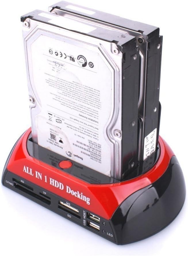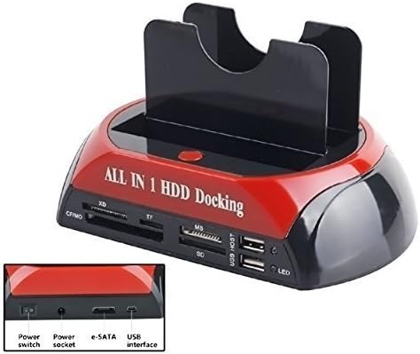Estación de acoplamiento de disco duro dual todo en uno para HDD Sata/ide de 2.5"/3.5", esto es perfecto 2.5"/ 3.5" IDE y SATA de disco duro y lector de tarjetas.
