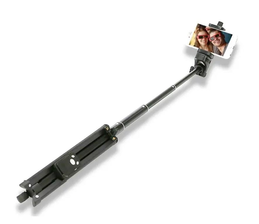 Es un kit portátil de soporte para selfies que se puede usar como mini trípode, trípode de mesa y palo para selfies.