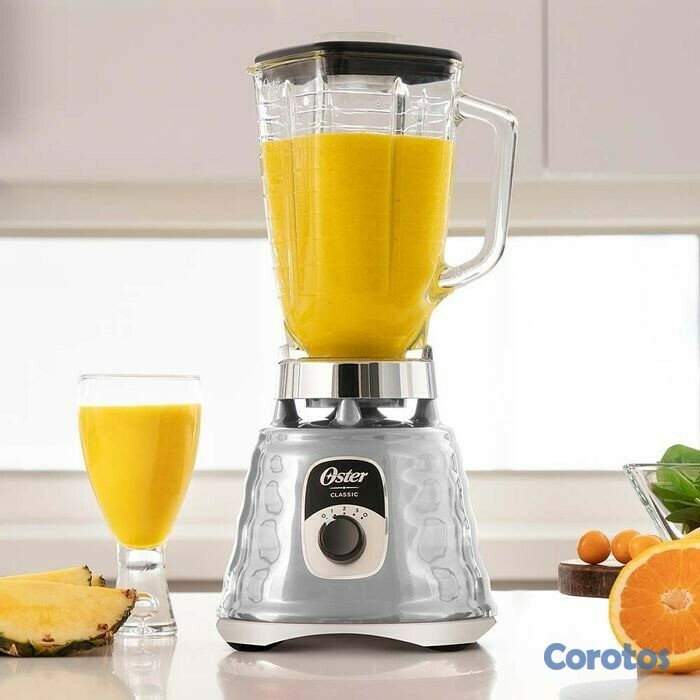 Licuadora Oster con base de metal con perilla ergonomica, facil de usar con taza de 1,25 litros resistente y duradera.