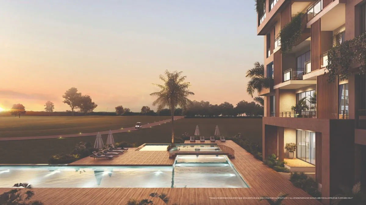 Cada apartamento está diseñado con estilo moderno y minimalista, con espacios amplios y terrazas con vistas al lago y campo de golf, combinando innovación y confort.